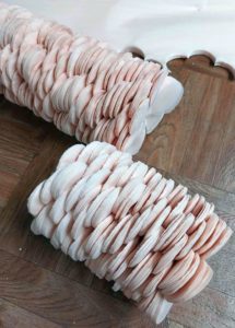 Questi petali, ormai formati, sono pronti per il loro viaggio: nella maggior parte dei casi, vengono spediti direttamente al ricamificio, dove maestri artigiani li impiegheranno nel ricamo dell’abito, trasformando il capo in un’opera d’arte floreale, un inno alla bellezza e alla maestria artigianale italiana.